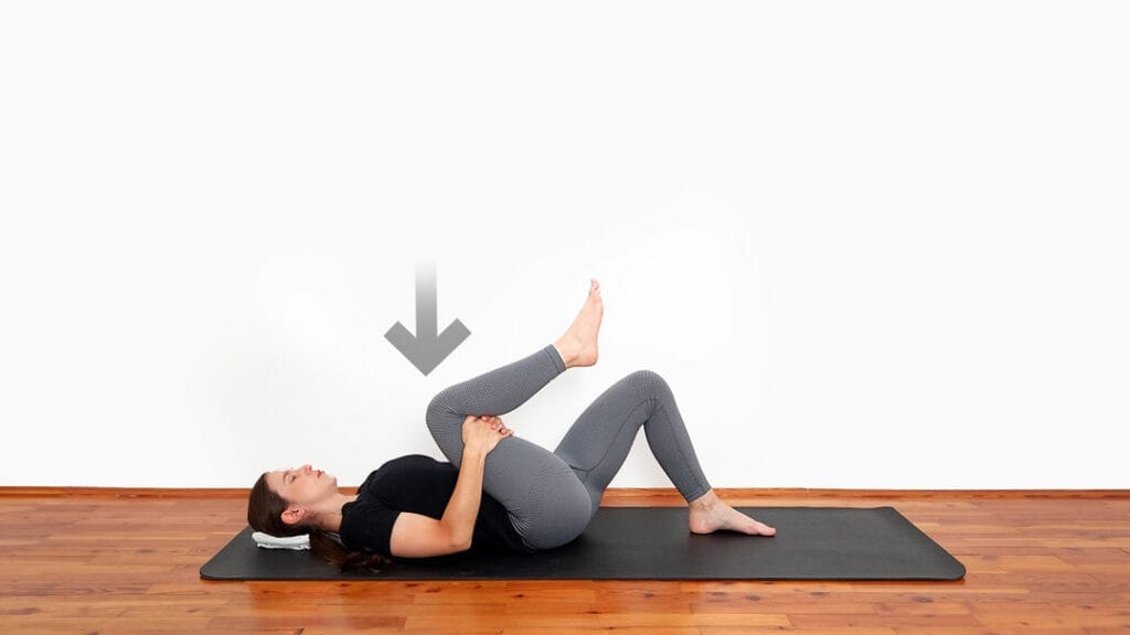 Potisk kolena na prsi je učinkovit način za sproščanje napetosti v spodnjem delu hrbta in lajšanje simptomov išiasa.