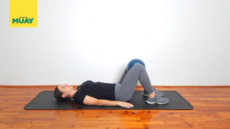 Most z žogo med koleni je različica tradicionalne vaje most. Doda upor z vključitvijo notranjih stegenskih mišic. Med kolena položite mehko žogo ali blazino. Med gibanjem mostu nežno stiskajte. To aktivira adduktorske mišice, glutealne mišice in stegenske mišice. Izboljšuje stabilnost medenice in krepi trup. Prav tako izboljšuje poravnavo kolkov in spodnjega dela hrbta. Redna vadba lajša ledveno napetost in izboljšuje držo. Spodbuja uravnotežen razvoj mišic v spodnjem delu telesa. Je preprost in učinkovit dodatek k rutinam za lajšanje bolečin ali krepitev trupa.
